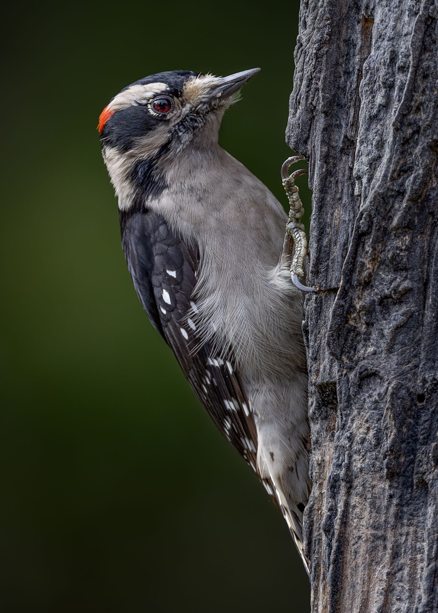 Downy Woodpeckers live year round along Johnson Creek. Over the years there has been a succession of Downy families coming to our feeder and foraging through the canopy above the creek. The frequency of their visits increases as they build their nests and rear their young coming to a head when they bring their young to the feeder. Most of these images are from winter, spring and fall as Downy's seem to have worn their feathers to the shaft providing for their young and are rather ragged through the summer as the renew their plumage.