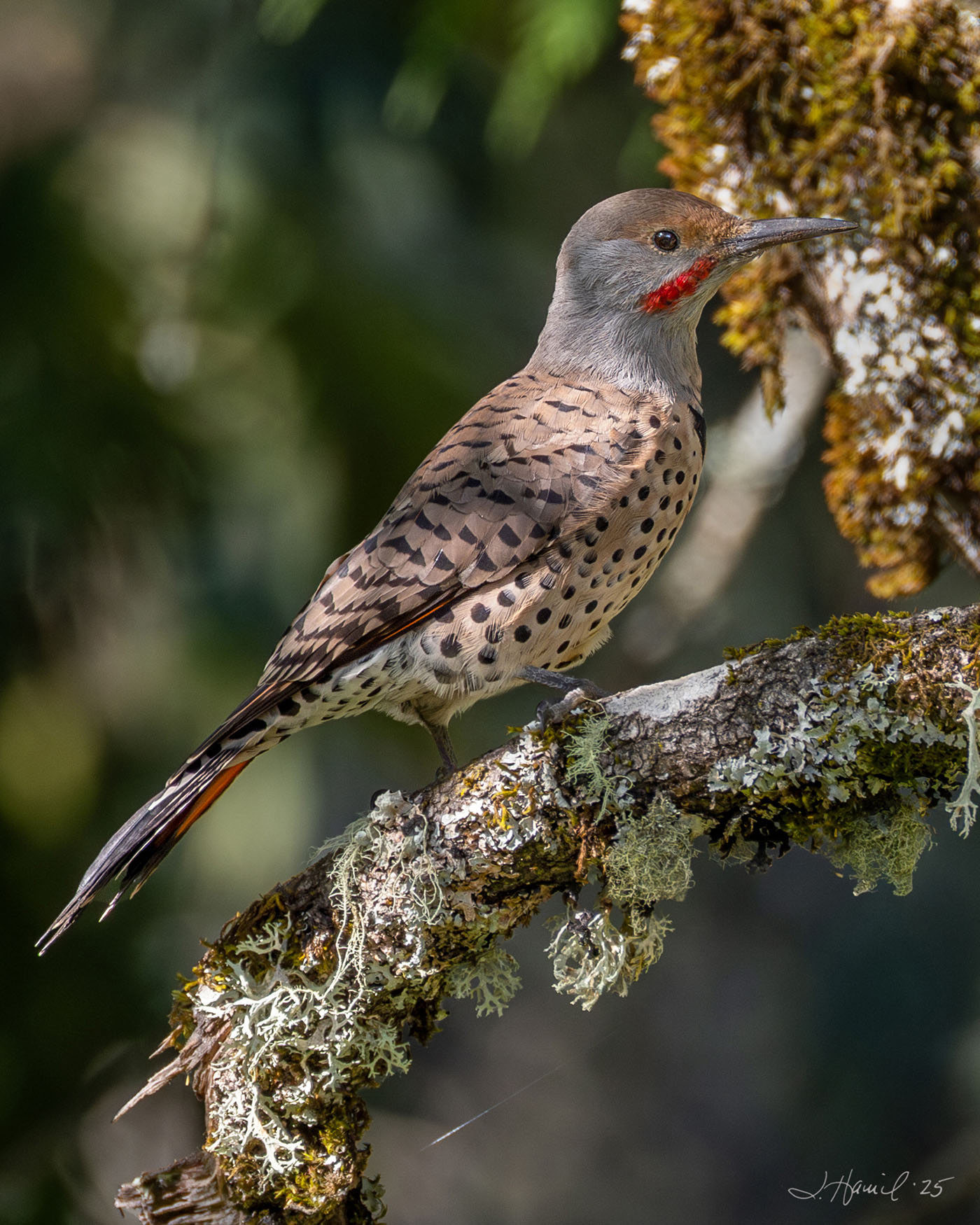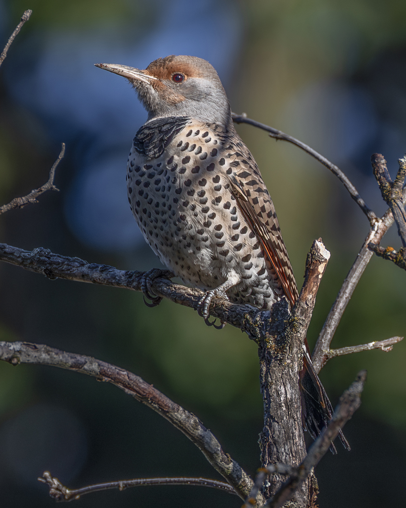 Northern Flickers (Red-shafted) live year round in my stretch of Johnson Creek's riparian zone . While they will forage in the trees they do mostly forage on the ground as can be seen in the rather dirt encrusted beaks in a few of these photos. They gather in spring, as if to count their numbers, posturing in the highest deciduous trees. Their numbers vary from year to year having declined since their once favorite stand of birch died from an infestation of birch borers.