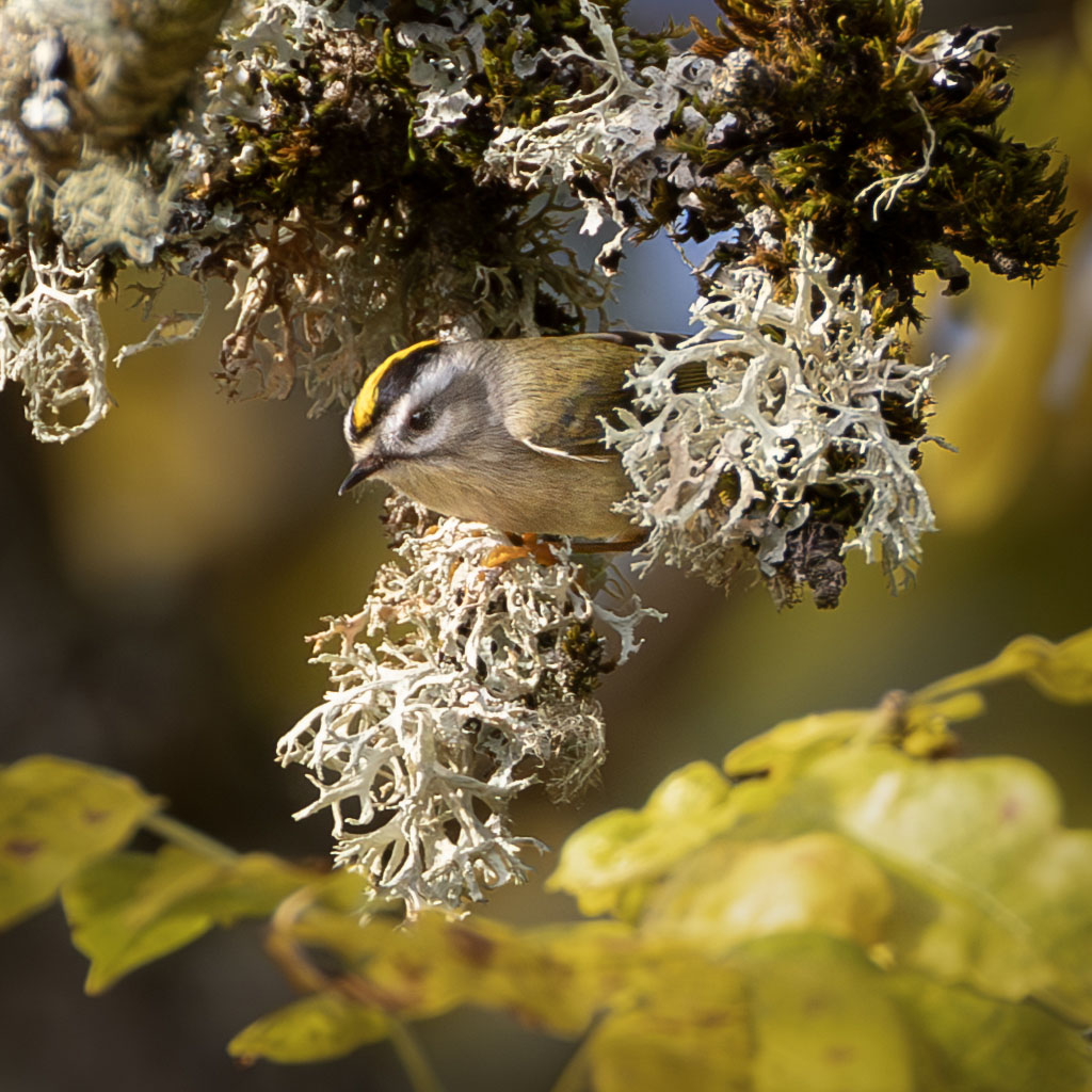 Golden-crowned Kinglets pass through the yard with cold weather, never staying very long. They gleen insects from the undersides of leaves or the base of pine needles.