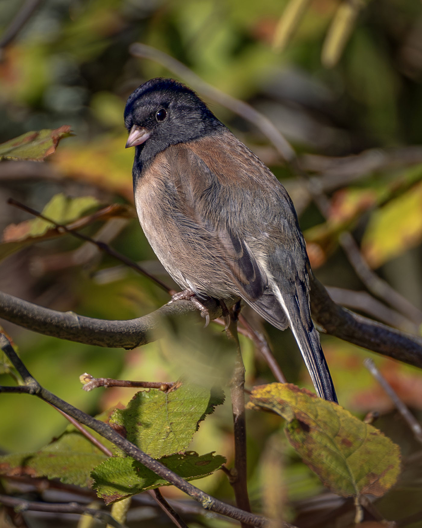 Dark-eyed Juncos have always been one of our winter birds. In fall they descend in flocks on our yard feeding under the bushes. They are more easily recognizable in flight than when they are feeding on the ground because when they fly they display bright white feathers on either side of their tails. We mostly see the Oregon variant though their plumage varies so much from one individual to the next there could easily be one of the more rare races blending in to the array. From 2015, a banner year with numbers of clutches, their young could be seen scooting around the yard through the summer months and Juncos have become year round residents.