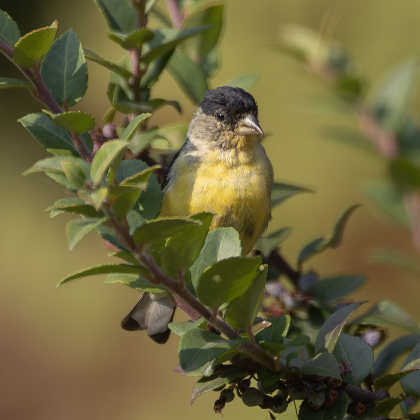 Lesser Goldfinches are gregarious and fun to watch. They pop up in flocks from time to time throughout the year though their numbers go up and down significantly from one year to the next.
