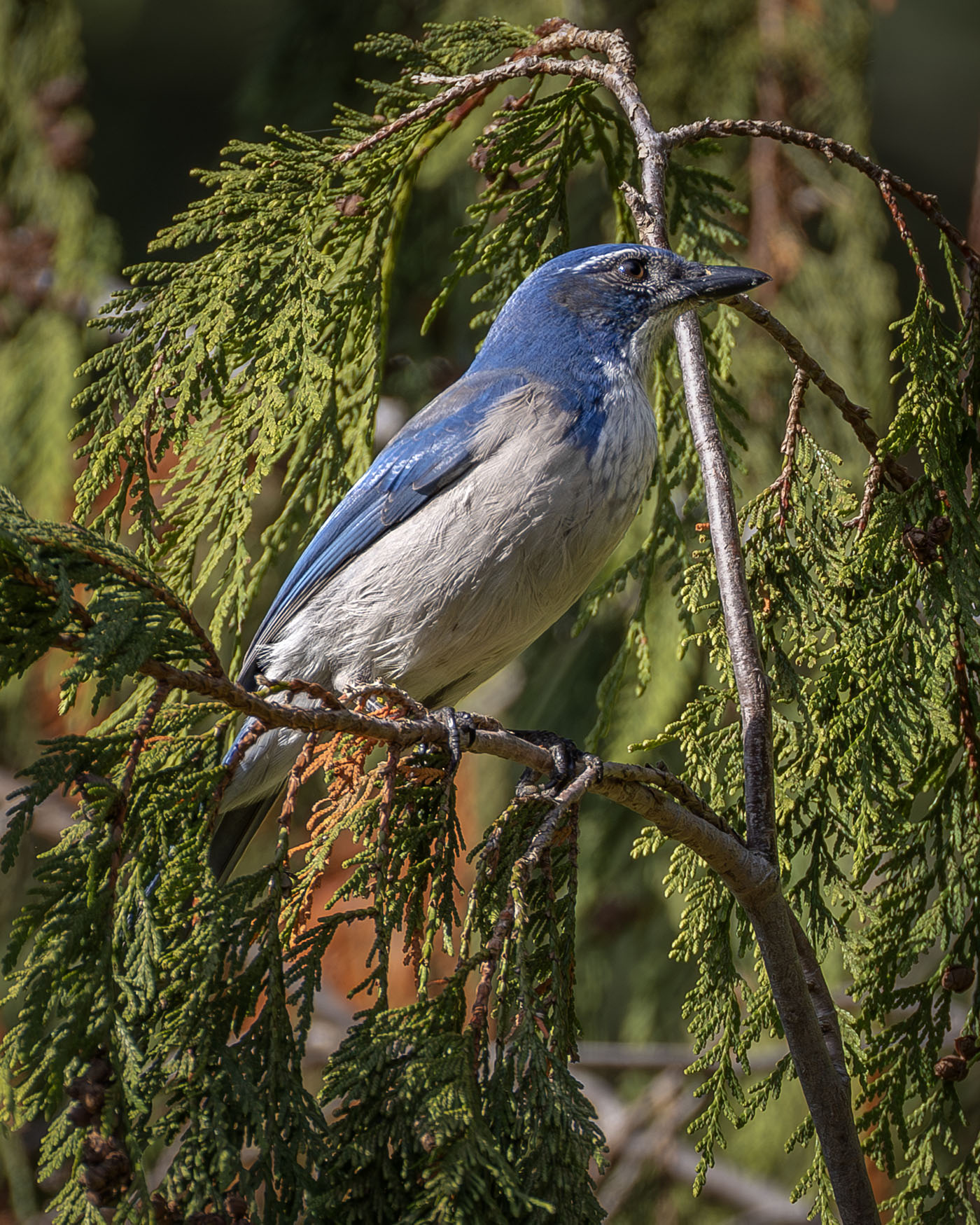California Scrub-Jays live above the creek year round. Scrub Jays might be the least pleasant birds in our yard. There seems to be ongoing friction with the Steller's Jays trading dominance with their raucous calls. It's as if they both would prefer to rob another bird of it's food than find their own. They can be found perched on some high viewpoint on the lookout for any opportunity.