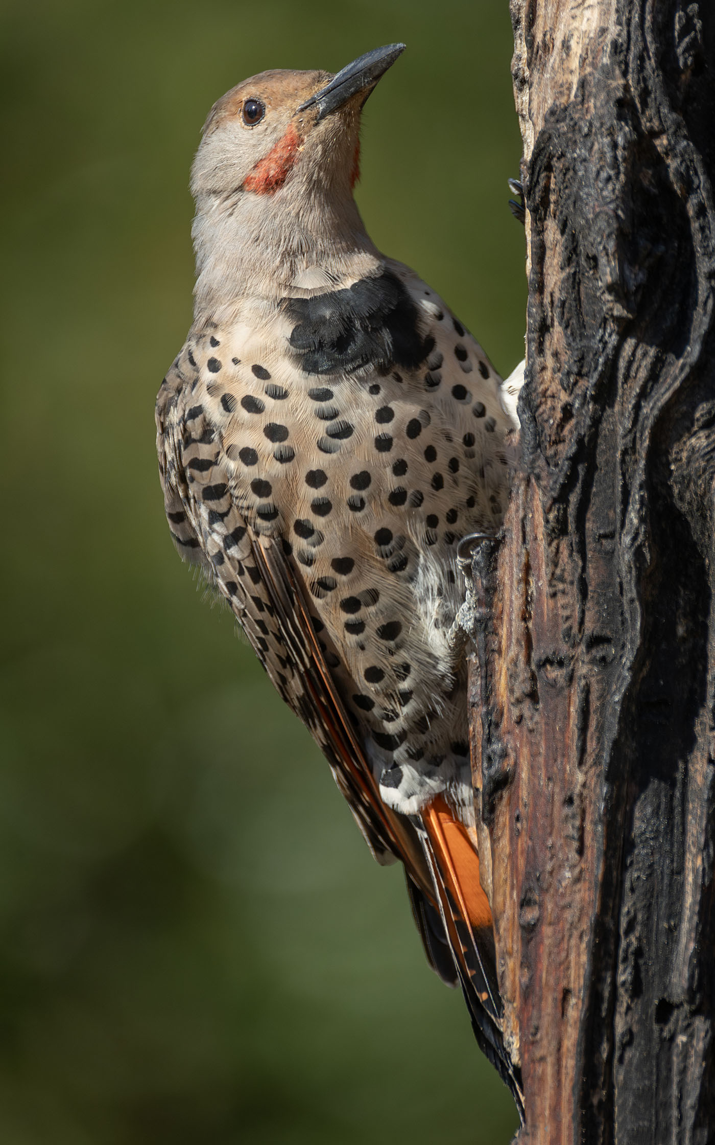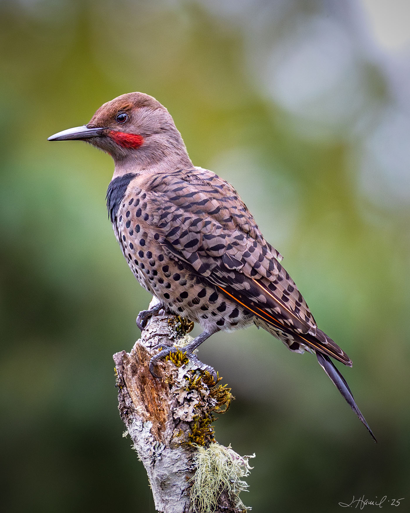 Northern Flickers (Red-shafted) live year round in my stretch of Johnson Creek's riparian zone . While they will forage in the trees they do mostly forage on the ground as can be seen in the rather dirt encrusted beaks in a few of these photos. They gather in spring, as if to count their numbers, posturing in the highest deciduous trees. Their numbers vary from year to year having declined since their once favorite stand of birch died from an infestation of birch borers.
