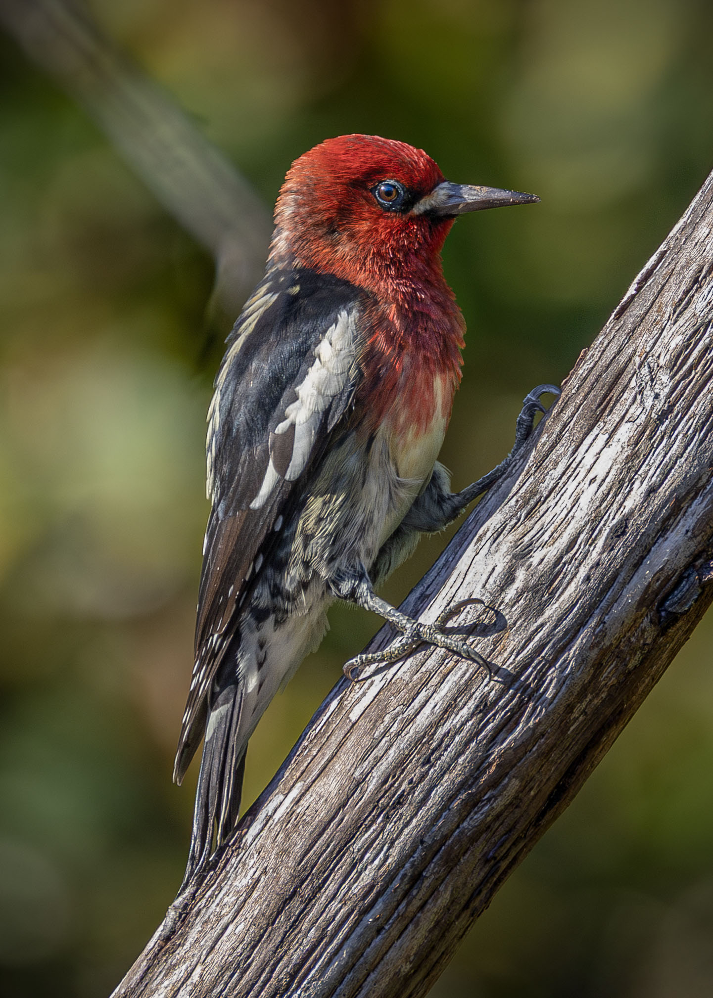 Red-breasted Sapsuckers come through the yard four or five times a year. Sometimes staying in the area for a week or so going from one tree to the next to check out the lines of small holes they'd drilled on their earlier visits.